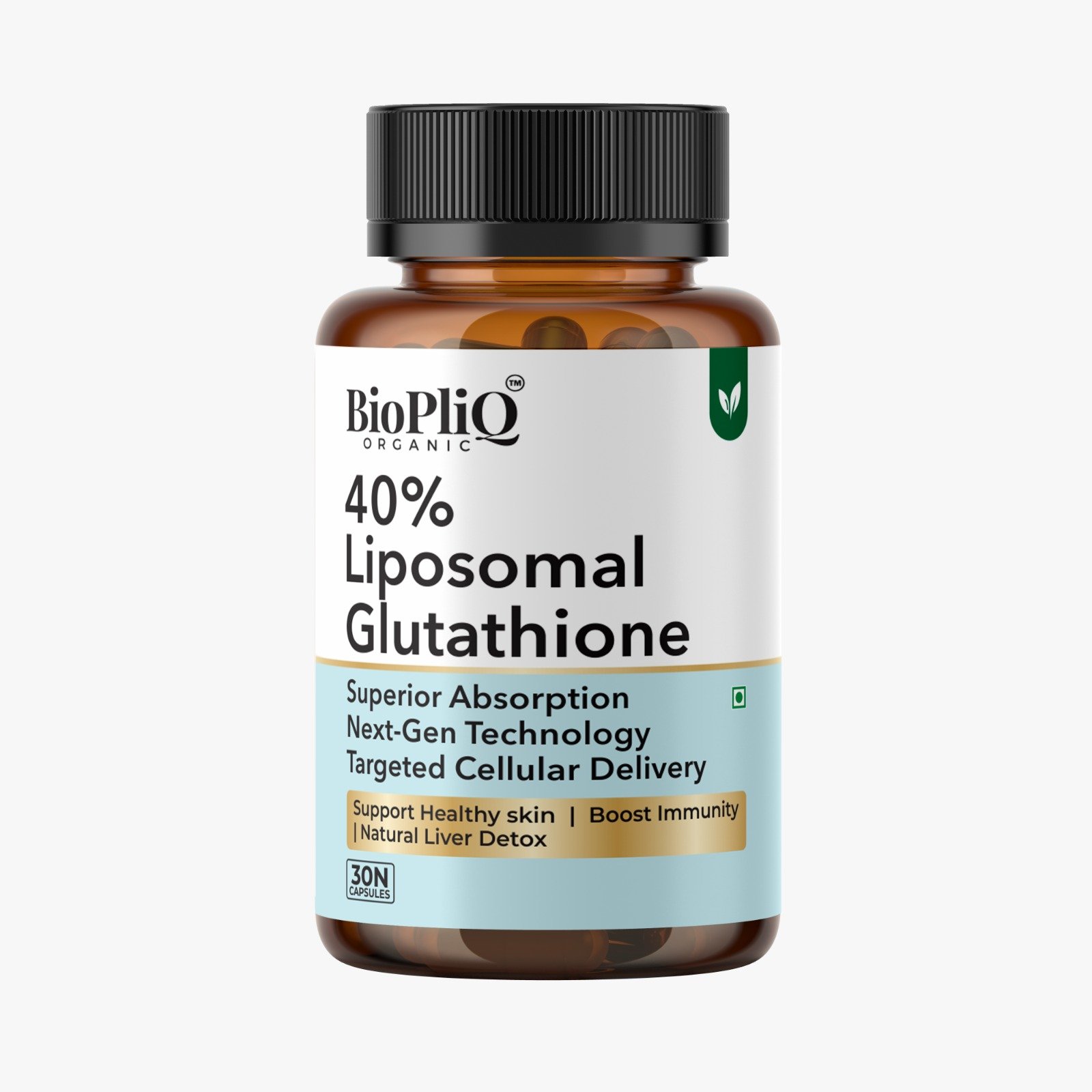 BIOPLIQ 40% Liposomal Glutathione 650mg | Internationally Tested & Lab Verified | Next-Gen Nano-Liposomal Formula | With Milk Thistle, Ashwagandha, Vit C, E, Biotin | 30 Veg Capsules
