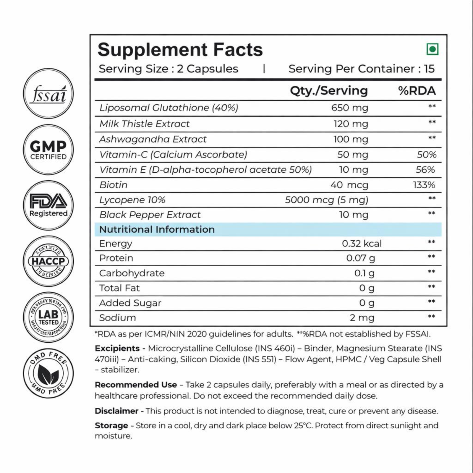 • Liposomal Glutathione 40% ingredient