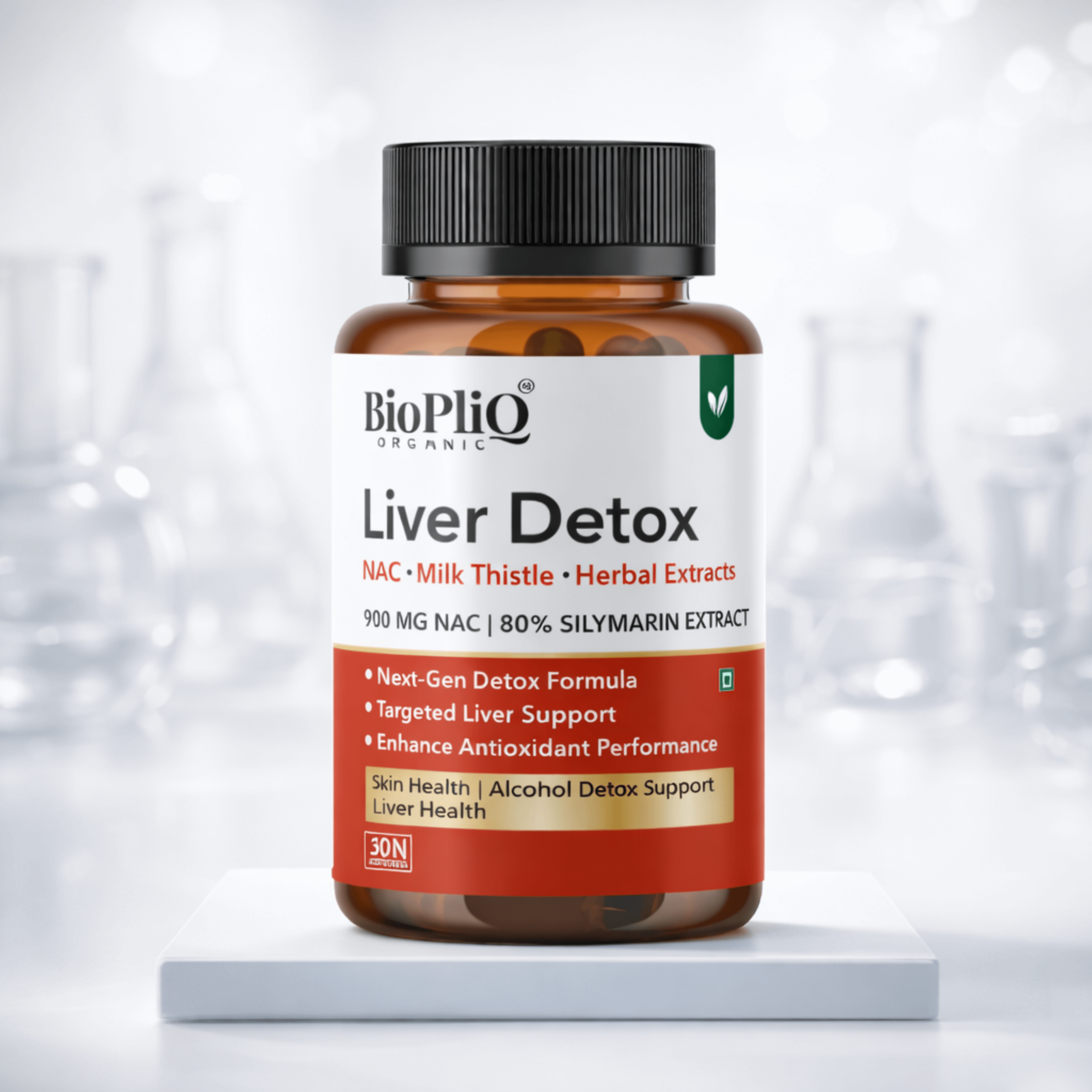 BioPliq Organic Liver Detox Capsules | 900mg NAC + 80% Silymarin Milk Thistle Extract | Liver Support | Alcohol Detox Support